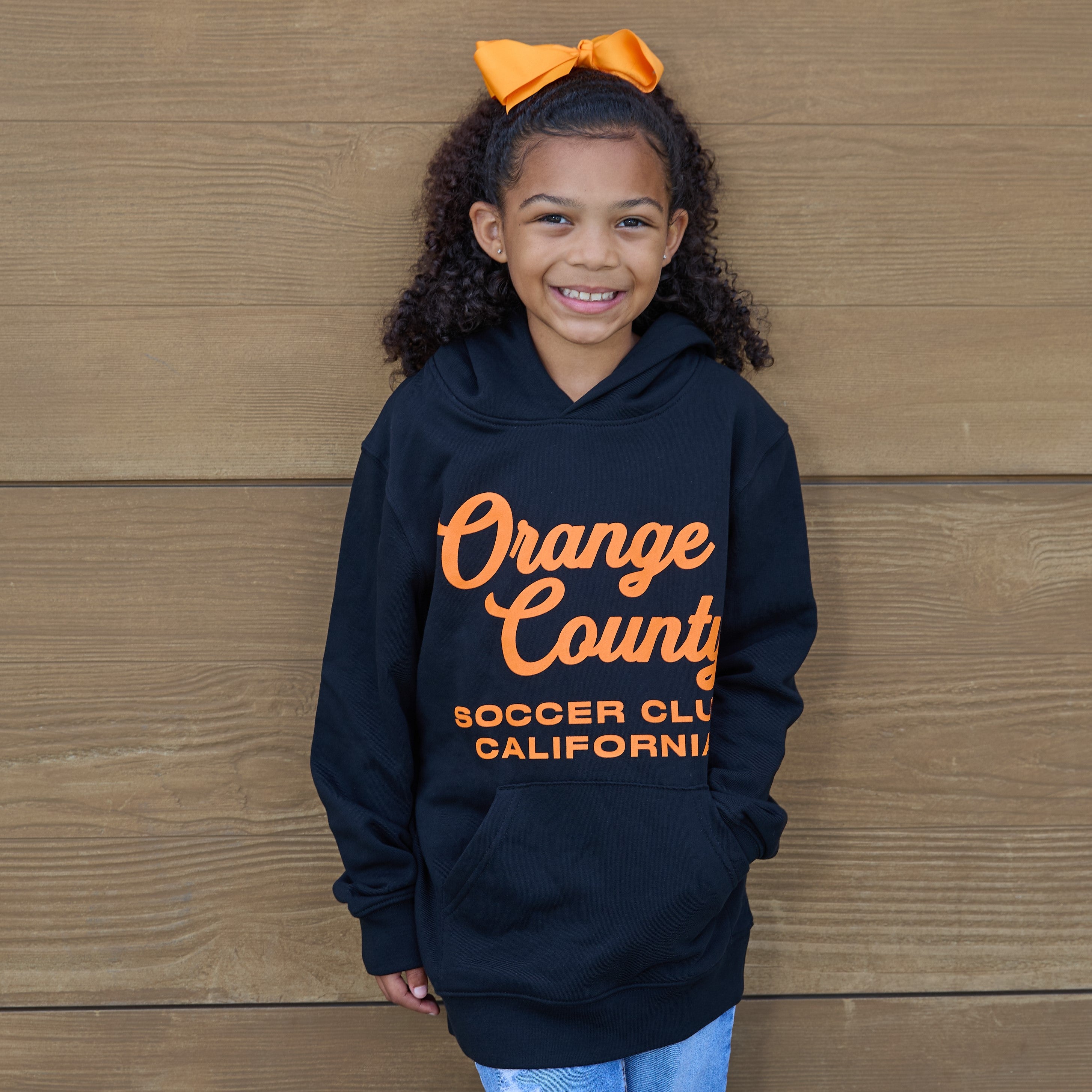 Rep the heart of Southern California soccer in timeless style. This Orange County SC Script hoodie features a bold, vintage-inspired design with orange lettering on a classic black hoodie. Whether you're at the match, out in the city, or soaking up the sun, this shirt brings the OC spirit with you.