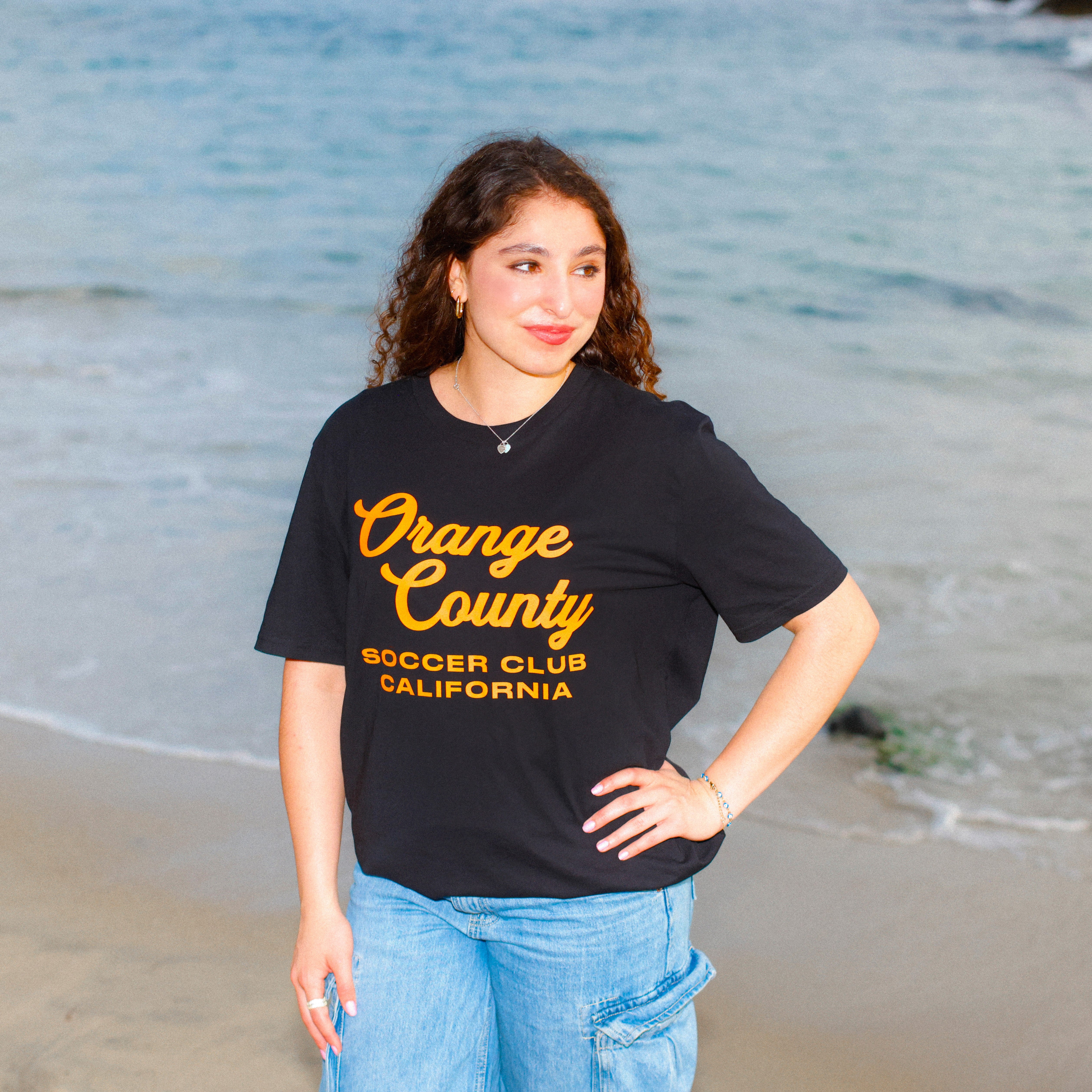 Rep the heart of Southern California soccer in timeless style. This Orange County SC Script Tee features a bold, vintage-inspired design with orange lettering on a classic black tee. Whether you're at the match, out in the city, or soaking up the sun, this shirt brings the OC spirit with you.